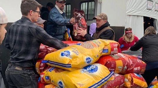 To date HYH has brought over $70,000 in feed, supplies and food to the Camp Fire survivors and to the Church. Most of our supply runs go directly to their church. HYH usually only brings supplies to those in need directly and personally, but we were so touched by Pastor Doug and his Church, and all their work, we knew how much he is making a difference in this town, Magalia, which has been forgotten. They are not receiving the support that the other towns are or the publicity. We still have people living in cars and tents and it is snowing! It’s freezing! There are still animals out there, with no owners or homes, cold and alone. But thanks to our followers and donors, we can continue our work and help the Camp Fire survivors of Magalia. But we need your help, one truck bed of dog or cat food, costs us about $2000. This adds up quickly. We caravan to save fuel and time, trying to bring as much as we can each trip. However, the Church runs out as soon as we drop supplies.